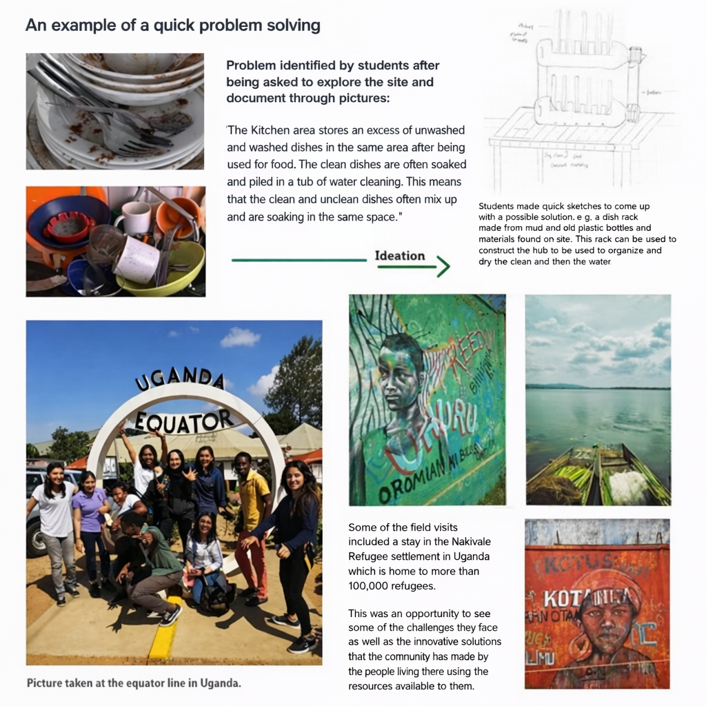 My role as an instructor was to facilitate student learning by providing an atmosphere for collaboration and problem solving. The students were made familiar with the process of design thinking and were encouraged to use these tools to find design solutions to problems within their environment. The aim was to cultivate an environment for collaboration and creative critical thinking.